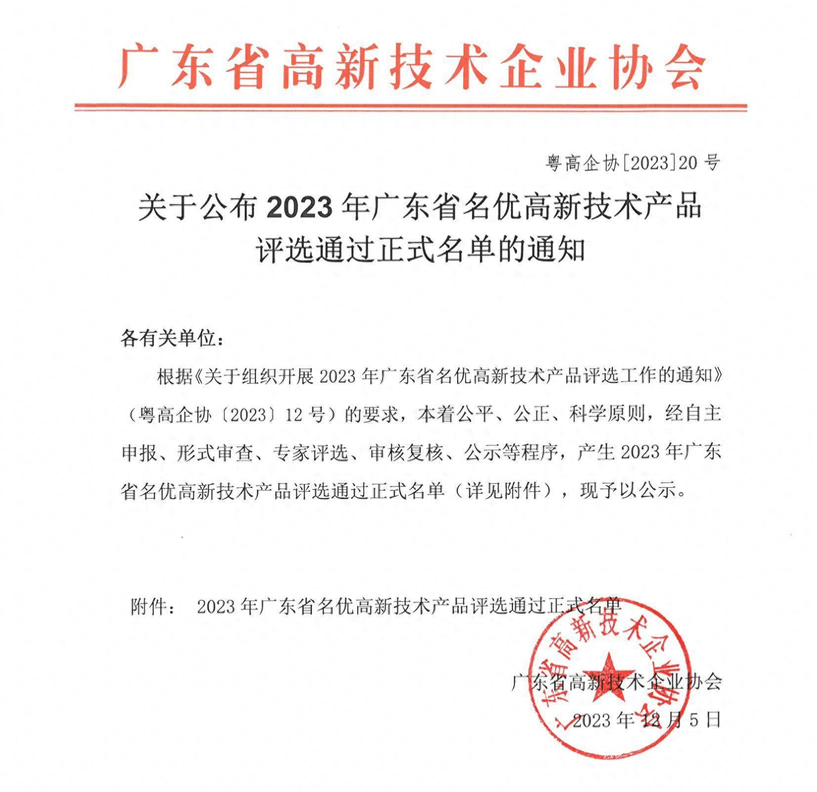 我司一產(chǎn)品獲評定為廣東省名優(yōu)高新技術(shù)產(chǎn)品